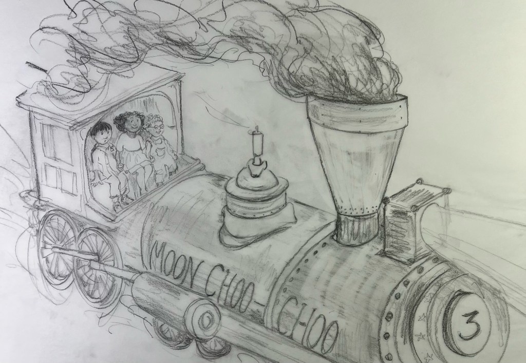 With the story of Moon Choo-Choo, I wanted to capture the joy of siblings’ imaginative and collaborative play. In this story, a girl and her two younger brothers are inspired by their toy train to travel to the Moon. It’s a rhyming story for children ages 3-6 and is the perfect read aloud for home, school, and/or library.